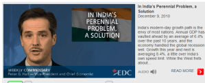 EDC’s Vice President and Chief Economist Peter Hall does a Weekly Commentary on subjects that are of significance to Canada’s businesses, commerce and economic well-being. Maybe not just Canada’s well-being but the world’s. Earlier this year he went on this whirlwind 20 plus city tour of Canada as EDC’s one-man rock band or our own modern-day Oracle of Delphi, giving his insightful analysis & views on the Economy and where it was headed. But that’s not the reason why today’s blog at Rmagine headlines Peter Hall. Peter’s observations in today’s weekly commentary is closer home to Rmagine’s core- India.